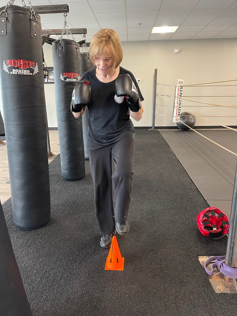 “Diagnosed with Parkinson’s disease in 2012, I’ve found kickboxing to be most beneficial in helping me deal with the symptoms and I believe in slowing the progression of the disease. For the past approximately 3 years I’ve been doing Ability Kickboxing with Stephanie. I love it. Each session is different focusing on a different part of the body to help improve the ability to handle the challenges the disease brings. Stephanie knows how to help you get the most benefit from your workout, encouraging you to push the limit safely. She is pleasant and caring. If you’re struggling in an area, have an injury, or just not having a good day she’ll adjust the workout for you. It’s also helpful and supportive to workout with others who have similar issues, encouraging each other to “press on “. I feel so much better since starting this program.”