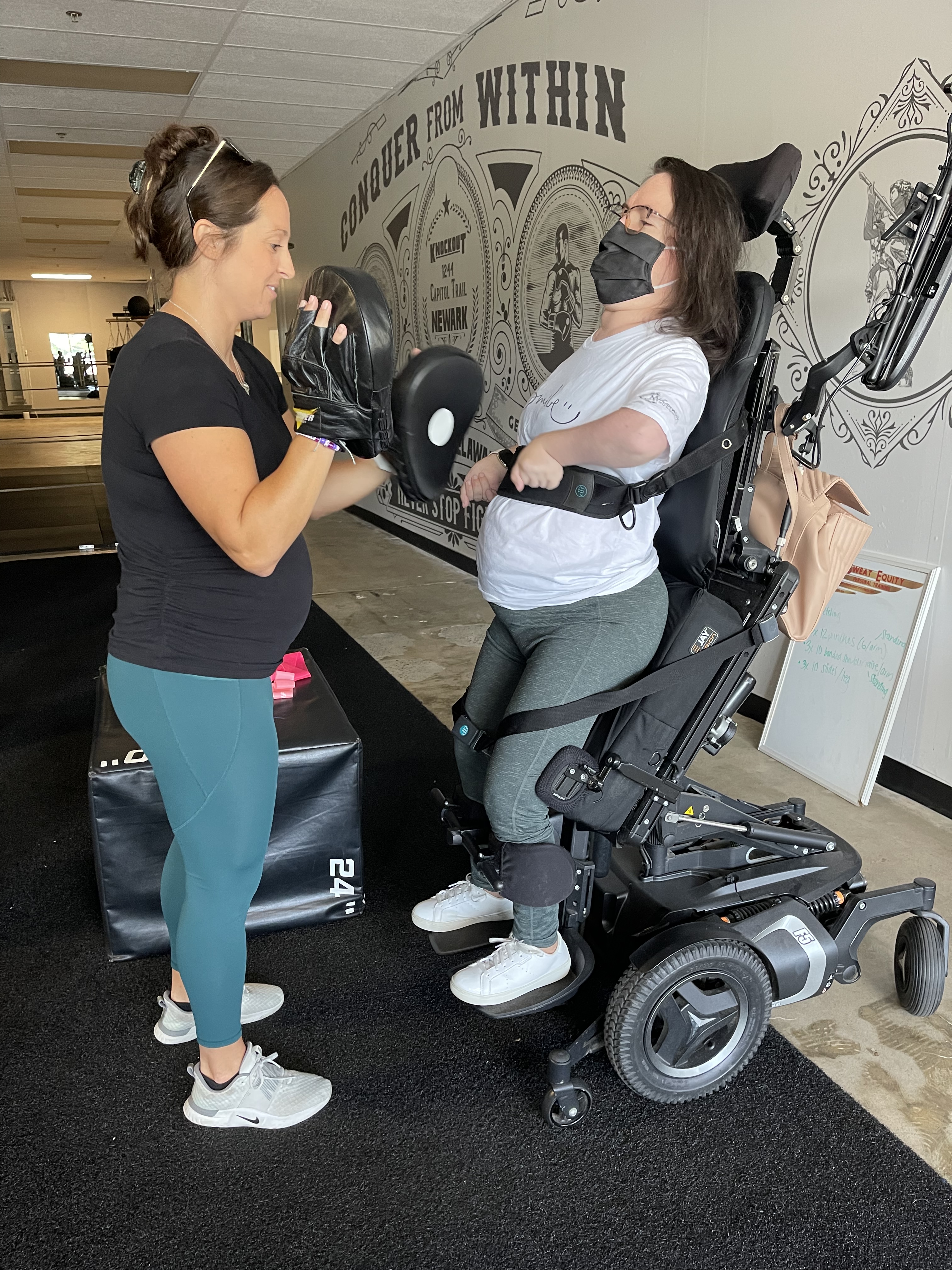“I have been working with Stephanie in the Ability Boxing program for about 4 years and have seen so much progress during this time. Not only do I feel great, but I notice that my center of balance and core strength has improved and certain tasks, like transferring in and out of my wheelchair, are easier than they were when I started. There are very few, if any, programs like this that are available to people with limited mobility, and I am grateful to Stephanie and Ability Boxing for giving me the opportunity to get exercise in a way that targets the muscles I can and want to work on, in a way that is fun and safe for my body.”